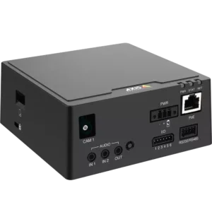 AXIS F9111 is a one channel main unit part of the 2nd generation F-series. One F21, F7225-RE or F4105-LRE video sensor can be connected to it. It also has 2 Audio IN, 1 Audio Out, 4x configuration I/O, 1 RS 232/485, 1x 10-48V DC. It has an Ethernet port and PoE Class 4. Max 25,5W.