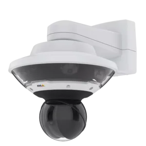 Outdoor-ready 360° situational awareness camera, comprising of 4x5MP sensors @ 20fps in H.264/H.265 Zipstream and Motion JPEG. Movable sensors with exchangeable lenses. Autofocus, D/N. Directional Audio Detection. Designed to be integrated with any AXIS Q61-series camera for large area coverage and simultaneous zoom-in view, using the one-click PTZ control feature. Full size SD-card slot. No extra equipment required, as it uses the same brackets, power supply and network cable as the connected AXIS Q61