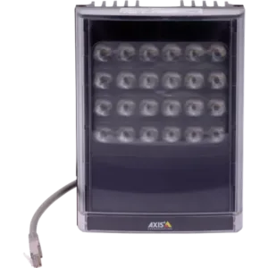 PoE powered IR LED illuminator for Axis network cameras. Included interchangeable diverging lenses providing 10°, 35°, 60° & 80° beam angles. Beam distance ranges 70m to 350m (230ft to 1150 ft). Made of IK09 impact-resistant aluminium and polycarbonate. IP66 and NEMA 4X ratings. Operating temperature -50°C to 50°C (-58 °F to 122 °F). PoE+ IEEE 802.3at required.
